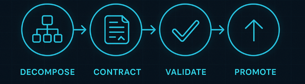 ASIL turns requirements into modular components with explicit interface contracts. It separates mission logic from technical plumbing and enforces MOSA through automated validation every sprint, milestone, and merge. Every integration is verified against open profiles and known performance bounds. Faults are injected early so failures are cheap and visible.