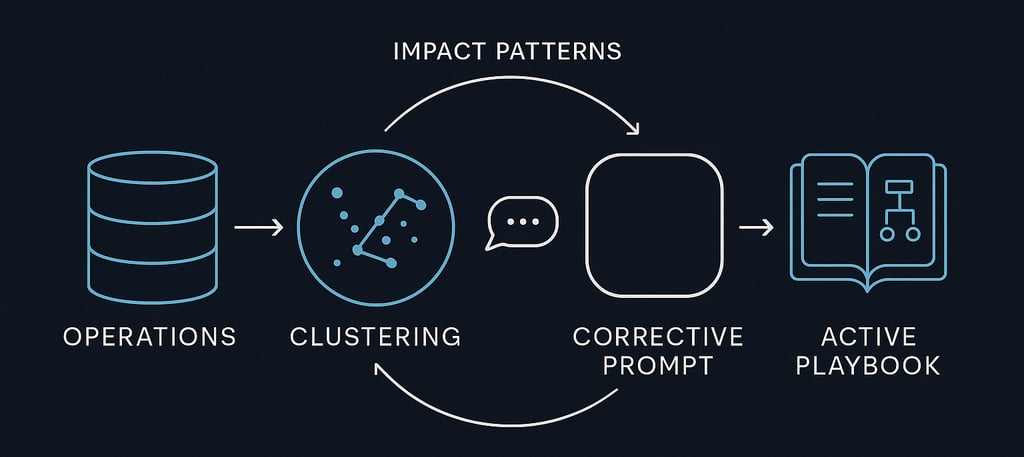 When the system detects recurring integration faults or operational bottlenecks, OIFL automatically generates corrective prompts and injects them into live Playbooks and ASIL backlogs. This keeps human judgment focused on the novel and the complex while routine deviations self-correct.